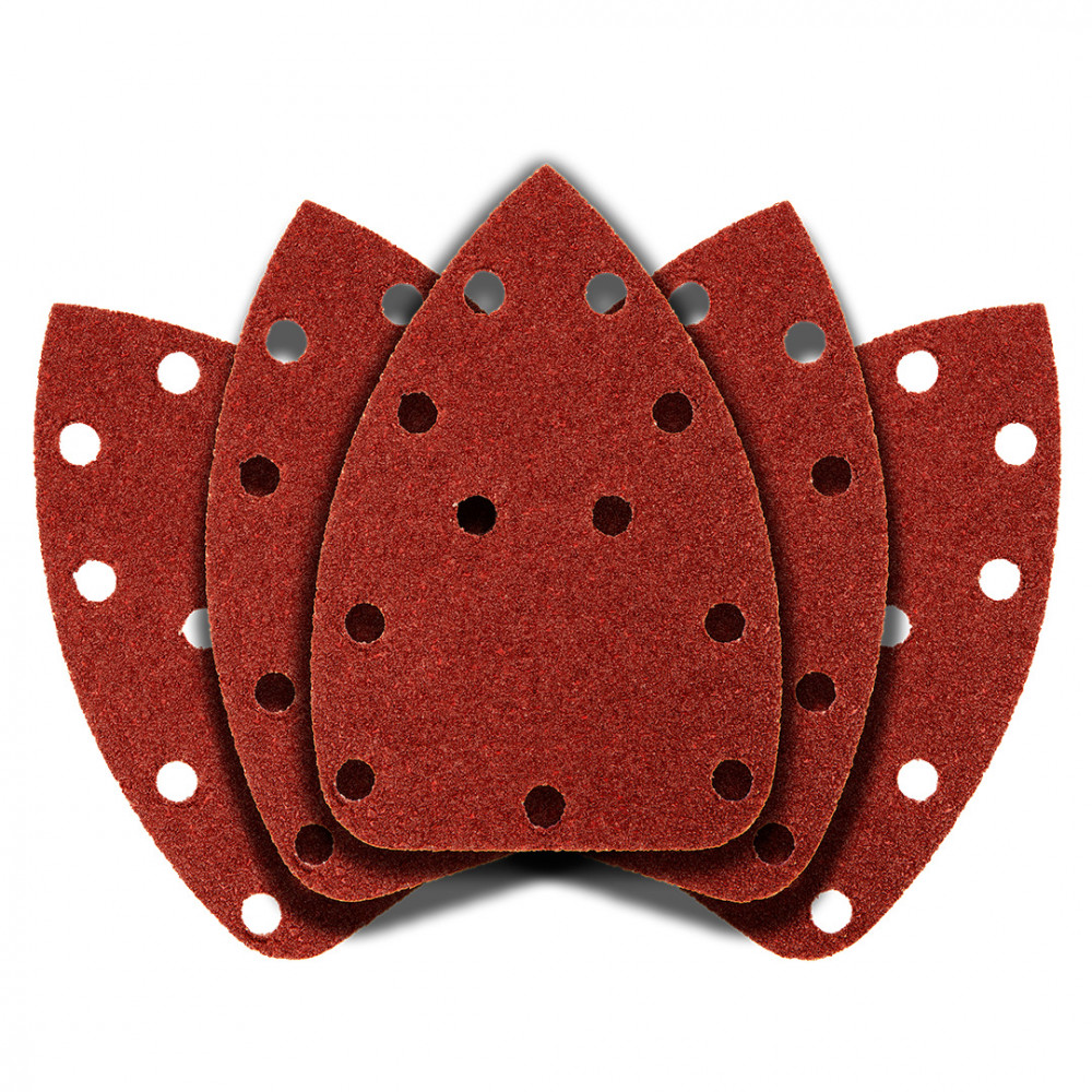 Tépőzáras csiszolópapír delta 140 x 140 x 80 mm, K 40, 5 db. 54H009 GRAPHITE 140x140x80 mm-es méretekkel. A 40-es osztályozás jellemzi, és delta orbitális csiszológépekhez (pl. GRAPHITE 59G336 csiszológép) tervezték. A papír használata fához, fémhez és műanyaghoz ajánlott. A tépőzáras rögzítés megkönnyíti a hatékony és gyors cserét. A papír porelszívó lyukakkal rendelkezik, így kényelmes pormentes munkavégzést és ezáltal hatékonyabb csiszolást biztosít az anyag túlmelegedése nélkül. Az 5 darab 140x140x80 mm-es csiszolópapír-készletet profiknak és tapasztalt barkácsolóknak ajánljuk.