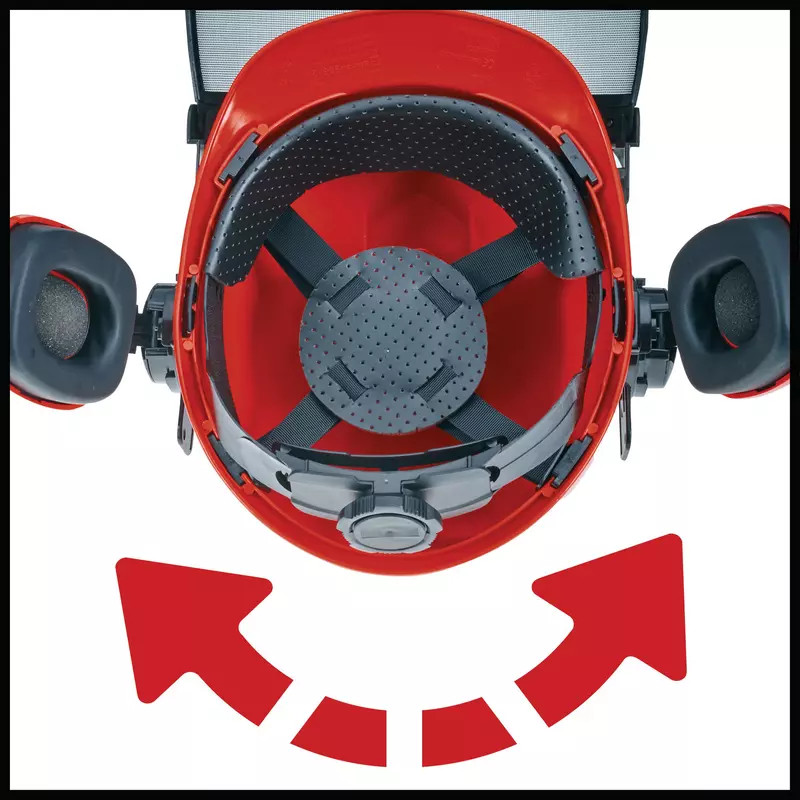 Az Einhell erdészeti védősisakjával úgy dolgozhat majd, mint egy igazi profi – a biztonság pedig garantált! Az Einhell védősisakját számos helyzetben hatékonyan és professzionális módon tudja használni. Mindegy, hogy erdészeti munkákhoz használja vagy fát kell felaprítania a láncfűrésszel, egy dolgot soha ne tévesszen szem elől: az Ön biztonsága és testi épsége mindennél fontosabb! A fejpánt hosszát így akár egy kézzel is könnyedén beállíthatja. A rugalmas arcvédőt könnyedén felhajthatja, beállíthatja, vagy akár le is veheti, ha olyan munkafázishoz ér, ami biztonságos és így nincs szüksége extra védelemre. A sisak tervezésekor a hallásvédő eszköz kialakítására is nagy hangsúlyt fektettünk: a végeredmény egy forgatható, felhajtható és állítható magasságú hallásvédő eszköz lett, melyet minden felhasználó könnyedén, az egyéni igényeknek megfelelően állíthat be.