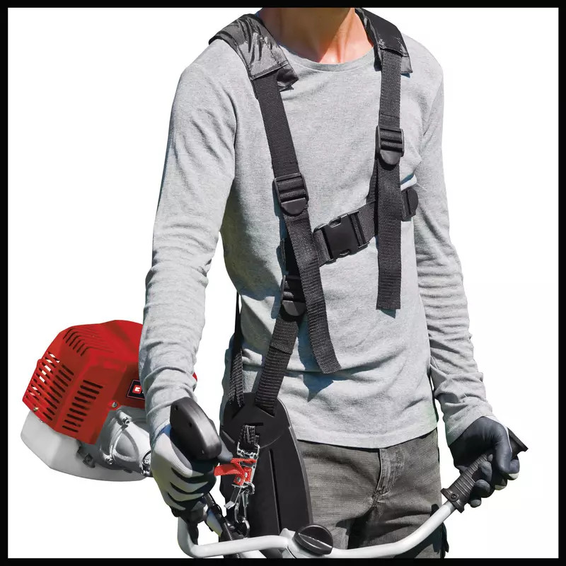 A GH-BC 43 AS benzines kasza különlegesen nagy teljesítményű készülék amellyel a nehezen hozzáférhető kerti helyeken lévő erős növényzet is könnyen levágható. Megfelelő erőt biztosít a munkához a minőségi kétütemű motor, amely a dupla csapágyas főtengely és a rezgéscsillapító funkció segítségével különlegesen nyugodt menetű, alacsony rezgésszintű munkát tesz lehetővé. A kasza valamennyi kezelőszerve könnyen elérhető az univerzálisan állítható, kétkezes, mountainbike-kivitelű alumínium fogón így kényelmesen és pontosan vezethető a kasza. A GH-BC 43 AS készülék a szakszerű kaszáláshoz választhatóan felszerelhető 3 fogú késsel vagy dupla, léptető automatikájú damiltekerccsel, amely a szállítási csomag része. A GH-BC 43 AS stabil alumínium fogószára jól bírja a jelentős igénybevételt. A Quick-Start rendszer könnyen hozzáférhető primer és automatikus szivató lehetővé teszi a gyors és könnyű indítást A munkabiztonságot garantálja a centrifugális kapcsoló, amely üresmenetben leválasztja a vágószerszámot. A komfort-pánt biztosítja a kényelmes munkavégzést. Egyszerű szállítást és a helytakarékos tárolást tesz lehetővé a kasza a keskeny szárnak köszönhetően, amely néhány kézmozdulattal két részre bontható.