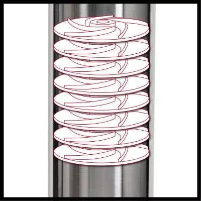 Az Einhell GE-DW 1155 N-A búvárszivattyúja teljesen automata: ha a vízellátás megszakad, akkor azonnal kikapcsol. Amennyiben újra van víz a szivattyúzni kívánt területen, automatikusan újra bekapcsol. A tiszta vizet a 8 fokozatú szivattyúkerék-rendszer max. 55 méteres magasságig képes felszivattyúzni még a mélyebben fekvő víztározókból és kutakból is. Az automata funkciónak és a nagy kifolyási nyomásnak köszönhetően a búvárszivattyú ideális megoldás kerti öntözőrendszerek működtetéséhez, valamint háztartások vízellátásának biztosításához, különösen WC-k öblítéséhez, mosógépek üzemeltetéséhez, vagy autómosáshoz. A kompakt és keskeny kialakításnak köszönhetően akár szűk csövekben is használhatja a készüléket. A szivattyú maximális merülési mélysége 19 méter. A 22 méter hosszú tápkábel és a mellékelt kötél rugalmas felhasználást tesznek lehetővé. A nagy teljesítményű 1100 W motorral a szivattyú maximális teljesítménye akár 6000 liter/óra is lehet. A búvárszivattyú már megjelenésében is rendkívül robusztusnak hat. A masszív készüléket egy sor biztonsági funkció teszi még biztonságosabbá. A szivattyúház és szűrő, valamint a nyomócső csatlakozó betétje rozsdamentes acélból készültek. Ezek - a kiváló minőségű csúszógyűrűs tömítéssel együtt - hozzájárulnak a készülék élettartamának jelentős mértékben történő meghosszabbításához. A szárazon futás elleni védelem megóvja a készüléket abban az esetben, ha megszűnne a vízellátás. A 33,3 mm (1" belső menetes) méretű nyomócső csatlakozó a készülékház tetején található, így bármikor könnyen hozzáférhet. A beépített visszacsapó szelep megakadályozza, hogy a víz visszafolyjon.Műszaki adatok: