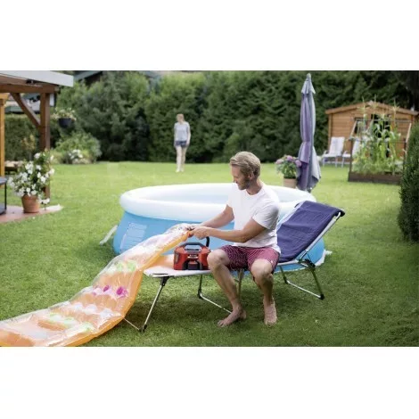 A Pressito 18/21 akkumulátoros kompresszorból soha nem fogy ki a levegő. Legyen szó szivattyúzásról vagy légtelenítésről, a felhasználási lehetőségek változatosak. A kompresszor a Power X-Change család tagja: a PXC akkumulátor a rendszercsalád összes készülékében használható. A kompresszor nagynyomású szivattyújának köszönhetően autógumik, kerékpárgumik és labdák felfújására, míg kisnyomású szivattyúja légmatracok feltöltésére alkalmas, melyek kisnyomású szívással ismét leereszthetők. A kompresszor digitális nyomáskijelzővel van felszerelve, egyszerű kézi működtetéssel, választható nyomásmértékegységek: bar, PSI és kPa. A kívánt nyomás a nagynyomású szivattyún állítható be. A praktikus jellemzők közé tartozik az automatikus kikapcsolás funkció a beállított nyomás elérésekor, valamint egy nyomógomb a magas nyomástartományban történő felfújáshoz, előre beállított nyomás nélkül. Az akkumulátoros kompresszor tárolórekesszel rendelkezik a 3 részes adapterkészlet számára.