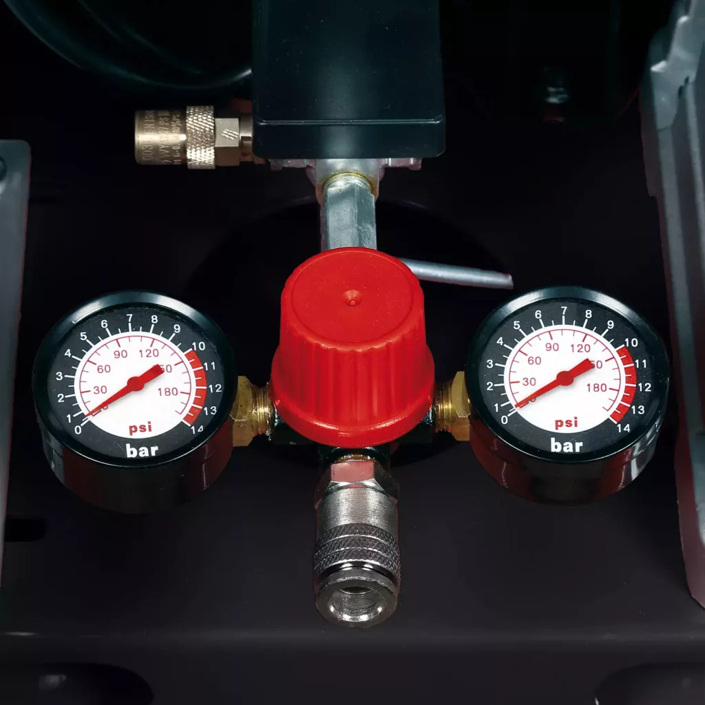 A nyomáscsökkentővel felszerelt kompresszor max. 10 bar nyomásig számos munkához használható. A készülékkel könnyedén felfújhatja a labdákat, gumimatracokat, vagy az autók és (motor)kerékpárok kerekeit. A kettős kompresszor és az ékszíjmeghajtás nagy leadott teljesítményt, a kiváló minőségű alkatrészek és az olajkenés pedig hosszú élettartamot biztosítanak. Az olajszintet mindig egyszerűen ellenőrizheti az üvegen keresztül. A visszacsapó- és a biztonsági szelepek biztonságos munkavégzést tesznek lehetővé. A szabályozott üzemi nyomás és a nem szabályozott tartálynyomás ellenőrzése érdekében a kompresszort nyomásmérővel és gyorscsatlakozó aljzattal szerelték fel. Az Einhell elhivatottan bízik termékei minőségében, ezért a tartályra 10 év rozsdamentességi garanciát vállal. A mobilitásról és a stabilitásról két nagyméretű kerék és a rögzítőfékkel ellátott görgő gondoskodnak. A karbantartás kényelmes és egyszerű a vízleeresztő csavarnak köszönhetően.
