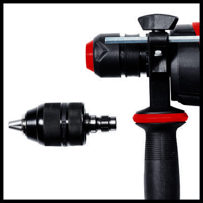 Az Einhell TE-RH 950 5F fúrókalapács egy multifunkcionális szerszám, amely nélkülözhetetlen segítőtársa lesz, akár a garázsban, akár a műhelyben dolgozik majd vele. A fúrókalapács öt különböző funkciót egyesít magában: használja fúráshoz, kalapácsfúráshoz, valamint véséshez, vésőrögzítéssel vagy rögzítés nélkül, a nagy teljesítményű készüléknek egyik feladat elvégzése sem jelenthet gondot. A kétfokozatú hajtóművet úgy tervezték, hogy még a kemény anyagok megmunkálása se jelenthessen gondot: az első fokozat nagy nyomatékot, a második pedig magas fordulatszámot biztosít. A TE-RH 28 5F fúrókalapács 950 watt teljesítményével és percenkénti 4500 ütésszámának köszönhetően könnyedén megbirkózik olyan anyagokkal, mint a kő, fa vagy fém. Ha betonba készít furatokat, akkor a fúrásteljesítmény max. 28 milliméter lehet. A pneumatikus ütőszerkezetnek köszönhetően a készülék úgy hatol át a legtöbb anyagon, mint kés a vajon. Az üzemmódok között a funkcióválasztó gomb segítségével válthat. A kényelmes munkavégzésről a nagy méretű Softgrip felületek és markolatok gondoskodnak. A zárt kialakítású fogantyú óvja a tenyerét, a rögzíthető nyomógomb pedig kényelmes munkavégzést tesz lehetővé. A készüléket robusztus félautomata SDS-Plus tokmánnyal szerelték fel, ami gyors és egyszerű szerszámcserét tesz lehetővé. A fúrókalapáccsal való munkát nagyban segíti a keményfémből készült, fokozatmentesen állítható furatmélység-ütköző. A tartalék tokmányt csavarozásra és fúrásra tervezték. A készüléket E-Box kofferben vásárolhatja meg. A későbbiekben ebben tárolhatja és szállíthatja a fúrókalapácsot.