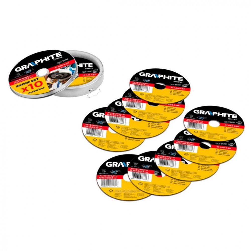 GRAPHITE 55H572 Vágókorong 10 Db Fémhez 125X1.0X22.2Mm, 41 A60-T-Bf, Inox.