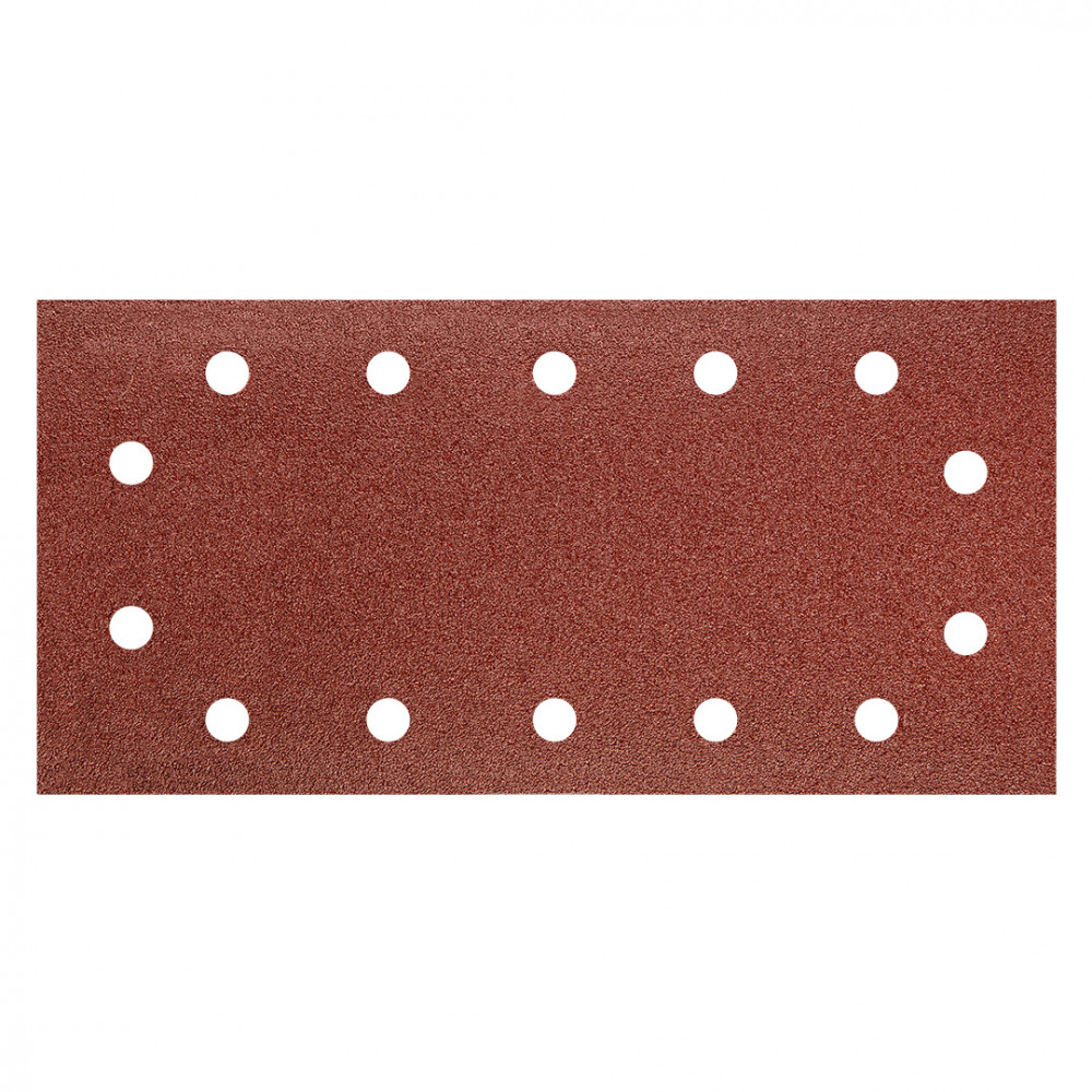 Csiszolópapír tépőzáras 115 x 230 mm, K80, lyukakkal, elektrokorund szemcse, E típusú papír, félig nyílt szórás, 5 db.