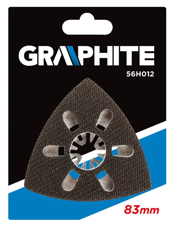 Tépőzáras csiszolótalp többfunkciós géphez, 83 x 83 x 83 mm A GRAPHITE tépőzáras csiszolótalp (cikkszám: 56H012) méretű 83 x 83 x 83 mm lehetővé teszi a GRAPHITE multifunkcionális szerszámgép átalakítását deltacsiszolóvá. A furatok lehetővé teszik a porelszívó feltét használatát munka közben. A tépőzáras megoldás biztosítja az elhasználódott csiszolópapír gyors cseréjét.