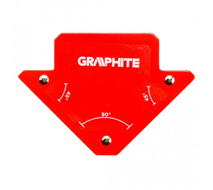 GRAPHITE Mágneses derékszög hegesztéshez (ref.sz. 56H901), a hegesztett anyagok 45˚ és 90˚ szögben rögzíthetők. Az erős ferrit mágnesek megtartják a hegesztett anyagokat, ennek köszönhetően a hegesztő kezei szabadok.