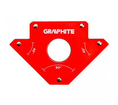 GRAPHITE Mágneses derékszög hegesztéshez (ref.sz. 56H903), a hegesztett anyagok 45˚ és 90˚ szögben rögzíthetők. Az erős ferrit mágnesek megtartják a hegesztett anyagokat, ennek köszönhetően a hegesztő kezei szabadok. A külön furat megkönnyíti a mágnes leszedését a munka befejezésekor.