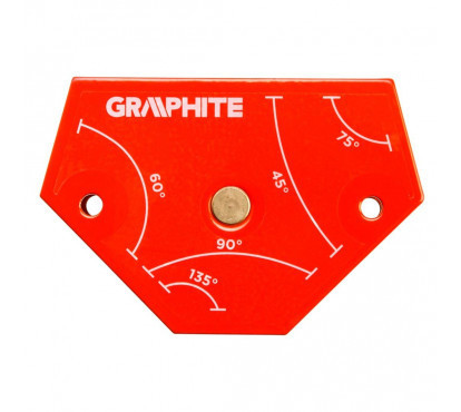 GRAPHITE Mágneses derékszög hegesztéshez (ref.sz. 56H904), a hegesztett anyagok 45˚, 60˚, 75˚, 90˚ és 135˚ szögben rögzíthetők. Az erős ferrit mágnesek megtartják a hegesztett anyagokat, ennek köszönhetően a hegesztő kezei szabadok.
