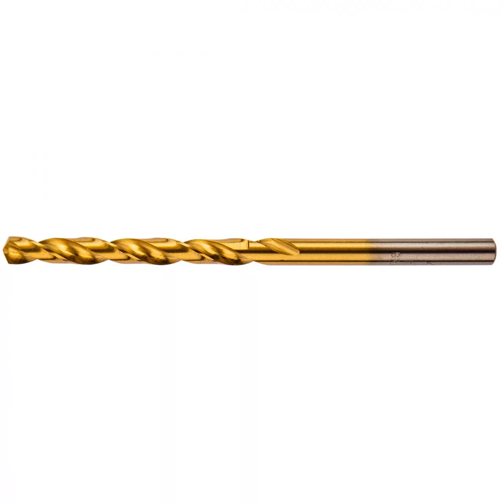 HSS‑TiN fémfúrószár, csiszolt, 9341 acél, csúcsszög 135º, kikönnyített keresztél, DIN 338