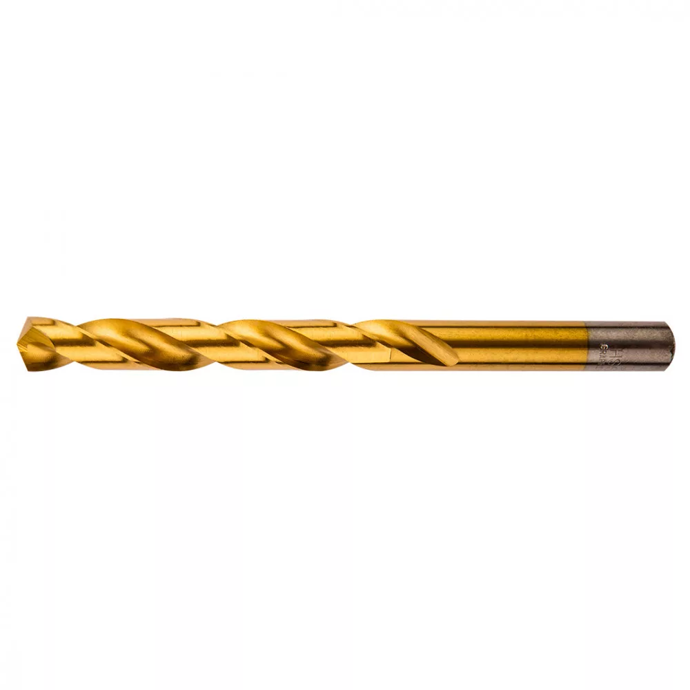 HSS‑TiN fémfúrószár, csiszolt, 9341 acél, csúcsszög 135º, kikönnyített keresztél, DIN 338