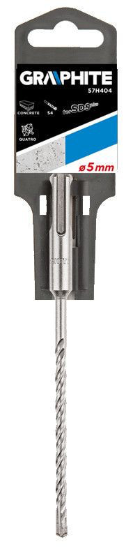 A GRAPHITE SDS+ betonfúró, vídiabetétes 4élű kialakításával, hatékony betonfúrást tesz lehetővé. Az S4 típusú dupla spirál biztosítja a megfelelő anyagelvezetést, védve a fúrószárat a túlmelegedés ellen.
