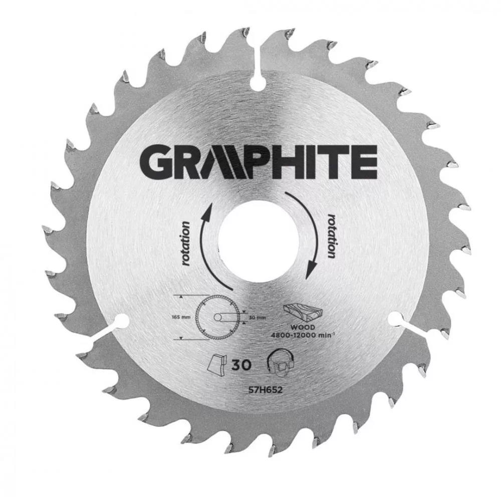 A GRAPHITE vídiabetétes fűrésztárcsa a hőmérsékletnek és a deformálódásnak igen ellenálló MN65-ös mangán acélötvözetből készül. Az YG6A vídiabetétes fogazás lehetővé teszi a fa és faalapú anyagok, mint pl. a rétegelt lemez, a forgácslap vagy az MDF lapok nagyoló vágását. A csomagolásban megtalálható szűkítő gyűrűk lehetővé teszik a fűrésztárcsák alkalmazását a fűrészgép típusok többségéhez.