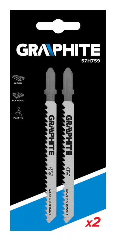 GRAPHITE szúrófűrész pengék fa és műanyag közepesen pontos vágásához. A T befogás alkalmazhatóvá teszi a pengét az összes Bosch típusú vagy univerzális befogással szerelt szúrófűrészben. A CrV (króm-vanádium) acél a pengéknek nagy rugalmasságot és hőmérséklet-állóságot kölcsönöz. A penge csiszolt oldalfelületei csökkentik a súrlódást és a penge felmelegedését fűrészelés közben.