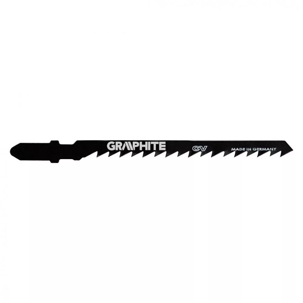 GRAPHITE szúrófűrész pengék fa és műanyag közepesen pontos vágásához. A T befogás alkalmazhatóvá teszi a pengét az összes Bosch típusú vagy univerzális befogással szerelt szúrófűrészben. A CrV (króm-vanádium) acél a pengéknek nagy rugalmasságot és hőmérséklet-állóságot kölcsönöz. A penge csiszolt oldalfelületei csökkentik a súrlódást és a penge felmelegedését fűrészelés közben.