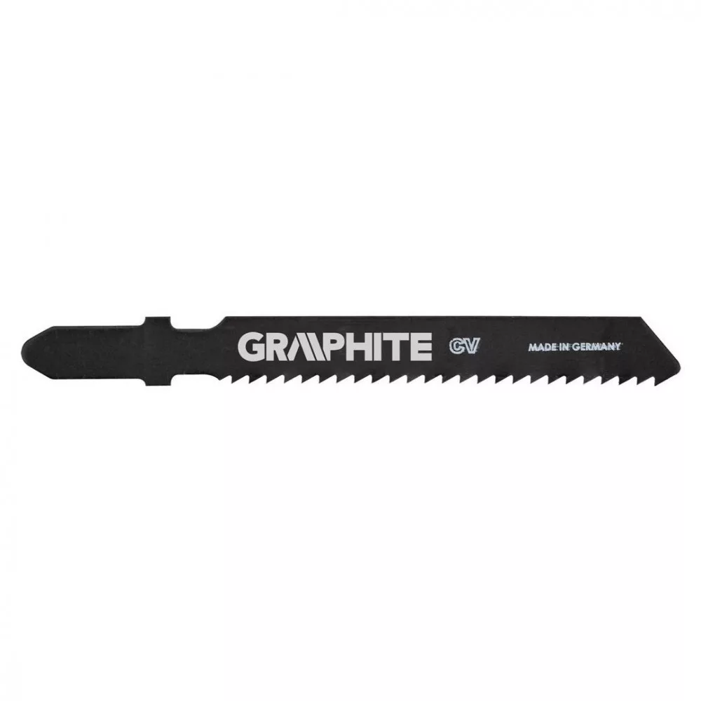 GRAPHITE szúrófűrész pengék fa és műanyag közepesen pontos vágásához. A T befogás alkalmazhatóvá teszi a pengét az összes Bosch típusú vagy univerzális befogással szerelt szúrófűrészben. A CrV (króm-vanádium) acél a pengéknek nagy rugalmasságot és hőmérséklet-állóságot kölcsönöz. A penge csiszolt oldalfelületei csökkentik a súrlódást és a penge felmelegedését fűrészelés közben.
