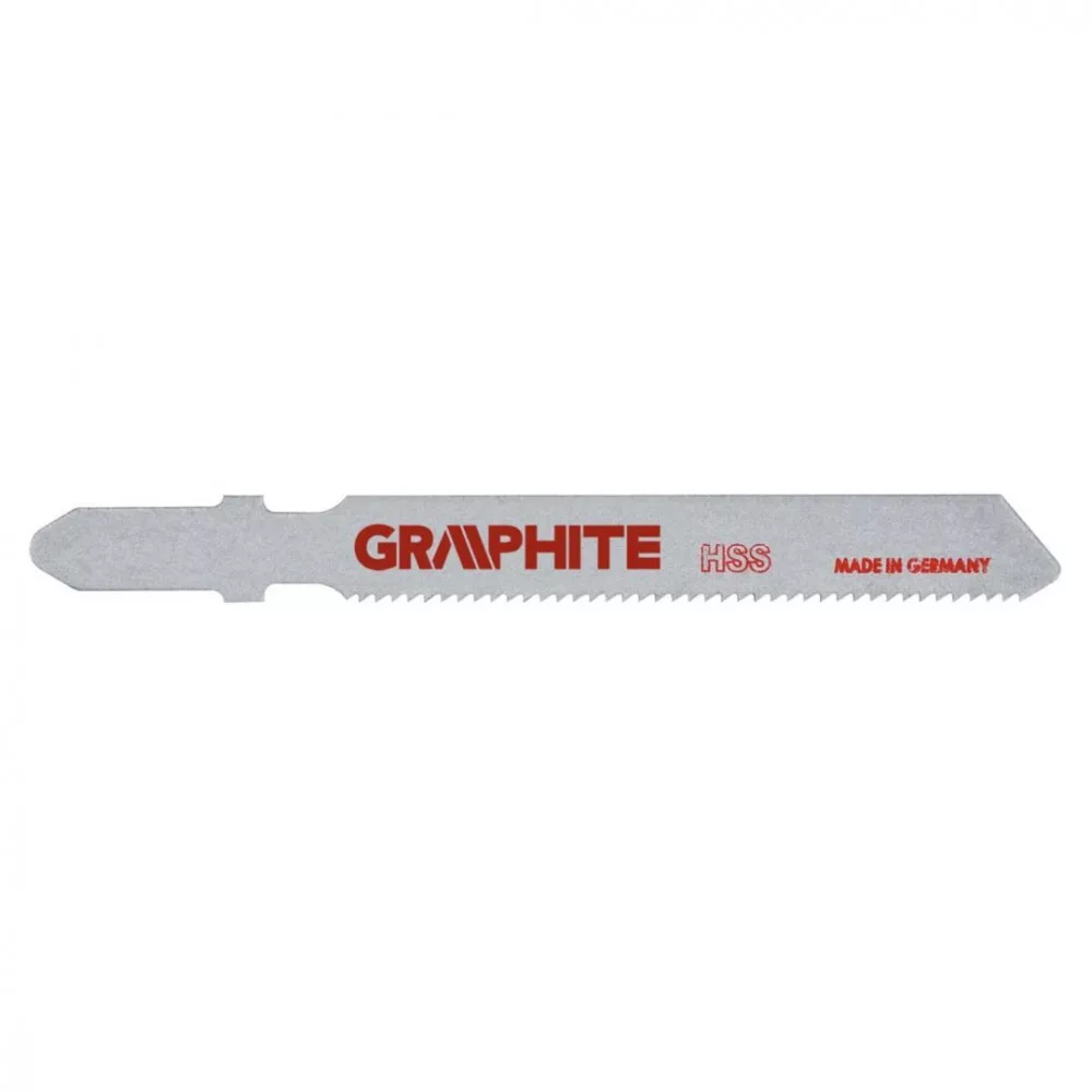 GRAPHITE szúrófűrész pengék fa és műanyag közepesen pontos vágásához. A T befogás alkalmazhatóvá teszi a pengét az összes Bosch típusú vagy univerzális befogással szerelt szúrófűrészben. A CrV (króm-vanádium) acél a pengéknek nagy rugalmasságot és hőmérséklet-állóságot kölcsönöz. A penge csiszolt oldalfelületei csökkentik a súrlódást és a penge felmelegedését fűrészelés közben.