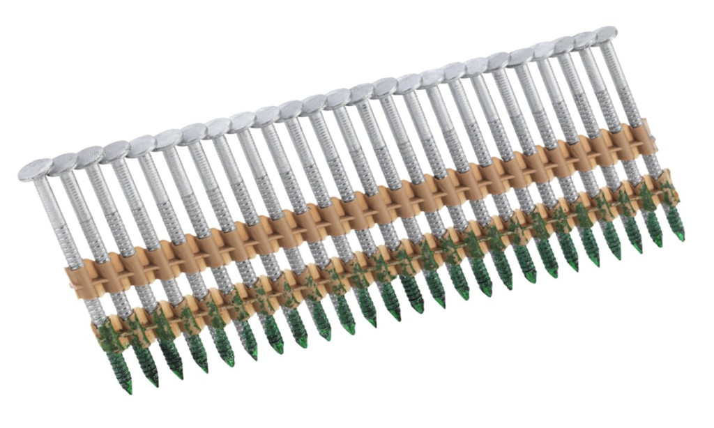 - A szegszalagok műanyag alapúak, 21°-os teljesen kerek fejű, gyűrűs szárú, galvanizált (MHD) szegeket tartalmaznak