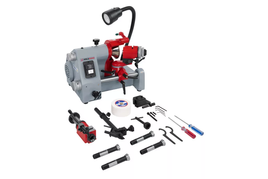 Szállításkor tartalmazza: rögzítőfülek (4, 6, 8, 10, 12 mm), sodrófúró, végmaró és eszterga tartó, korund köszörűkorong, gyémántcsiszoló kerék, hajtószíj
