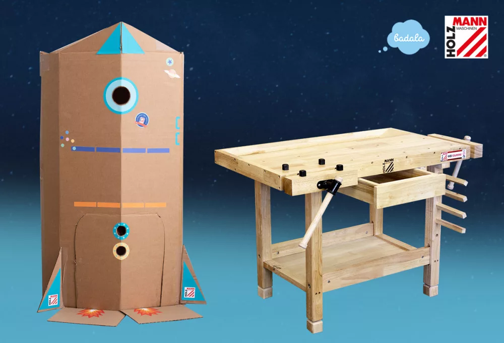 HOLZMANN WB106MINI Munkapad gyerekeknekÖsztönözzük a kicsik kreativitását a csomagolásból való játékrakéta elkészítésével, mely egyben egy belépőt is jelent a gyerekek számára a képzeletbeli HOLZMANN Űrtudományi Akadémiára, hogy már kiskorban elsajátíthassák a barkácsolás fortélyait!