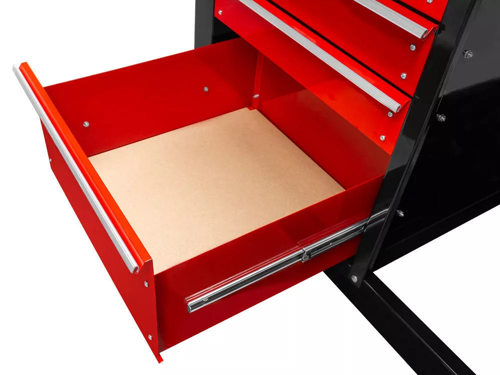 Széles MDF munkafelület tartós acél keretben Hátsó lyukasztott falap kisebb eszközök fellógatására (20 db akasztóval) 4 fiókkal Fiók könnyű használata a teljes kiterjesztésű golyós csapágyas csúszópályának köszönhetőenMűszaki adatok:Terhelési kapacitás: 454 kg Méretek: 1205x580x1735 mm Súly: 52 kg |