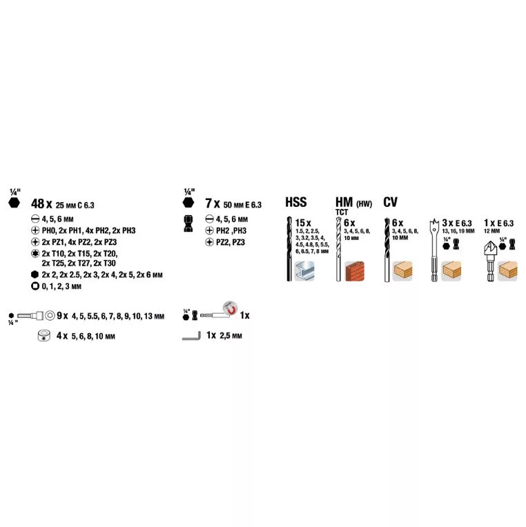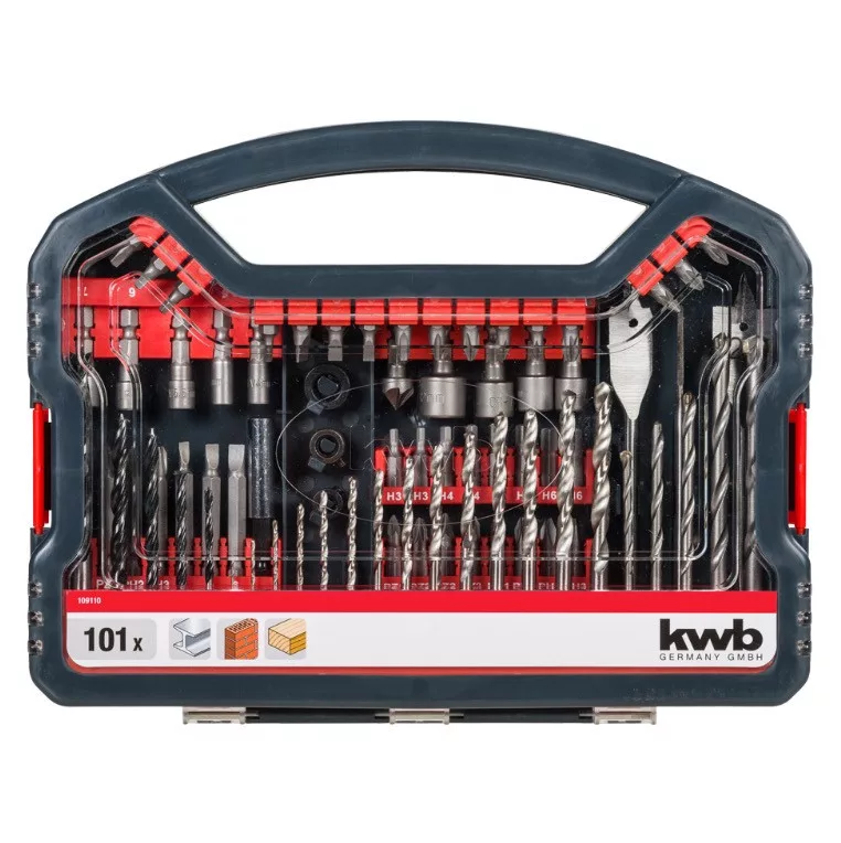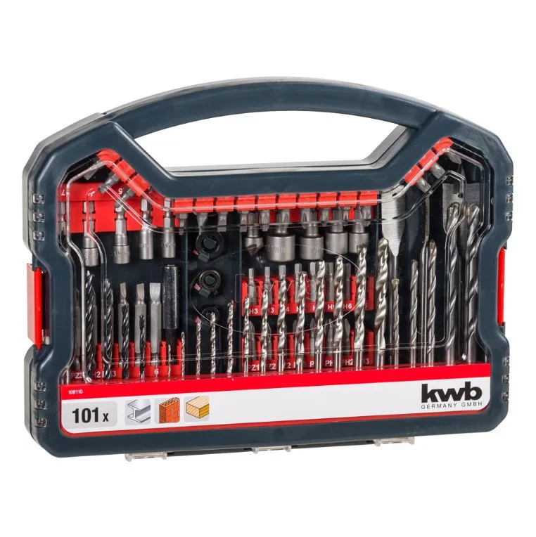 101 db-os power box fa, fém és kőzet fúrószárakkal, bitekkel, mely optimális kiegészítő minden vezeték nélküli csavarhúzó, fúró és vezeték nélküli fúrógép számára.