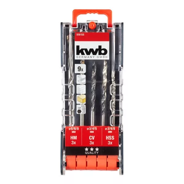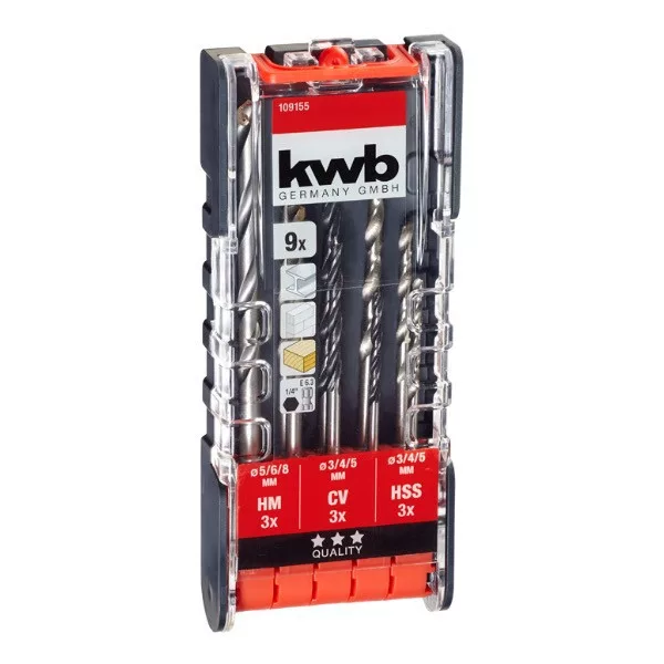 KWB 109155 STANDARD COMBINATION TCT, HSS, HM, CrV Hexagon befogású fúrószár készlet9 db-os hexagon befogású fúrószár készlet.