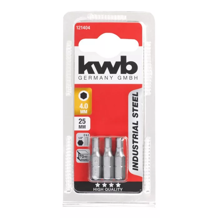 KWB 121455 INDUSTRIAL STEEL HEXAGON 5.5 MM Bit3 db, ipari TQ60 acélból készült 5.5 x 25 mm-es bit készlet, mely minden szabványos csavarkötéshez alkalmazható.