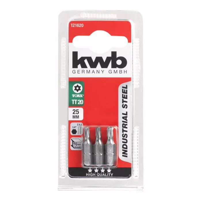 KWB 121640 Csavarbehajtó bit készlet TORX TT40 Bit3 db, ipari TQ60 acélból készült TT40-es, 25 mm-es bit készlet, mely minden szabványos csavarkötéshez alkalmazható.