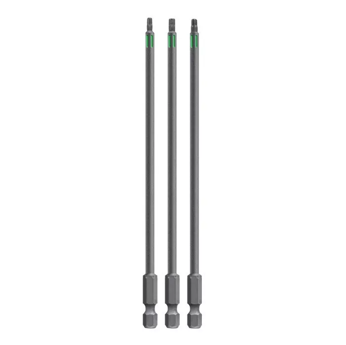 3 db 150 mm-es torziós bit TT25, TT30 és TT40 méretekben, melyek különösen alkalmasak kemény csavarkötések alkalmazásakor.