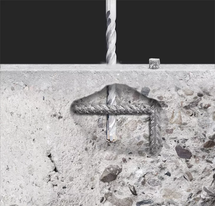 160/100 x 12 mm-es, csúszásmentes négy élű kőzet fúrószár, mely ideális fali csatlakozó és rögzítő furatok betonba történő fúrásához.