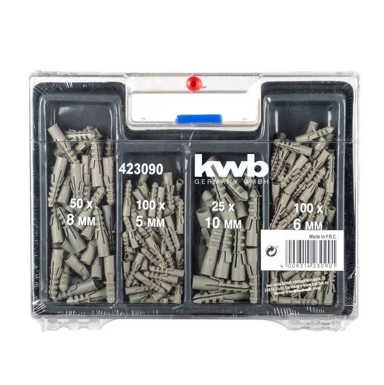 100 db műanyag dübel, egyenként Ø 5 mm és Ø 6 mm