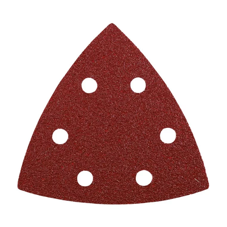 5 db, 93 mm-es delta csiszolólap alumínium-oxid dörzs bevonattal, fenolgyantával kötve, ragaszott tépőzáras lyukacsos hátlappal, a következő méretekben: 2 db G40, 1 db G120, 2 db G240