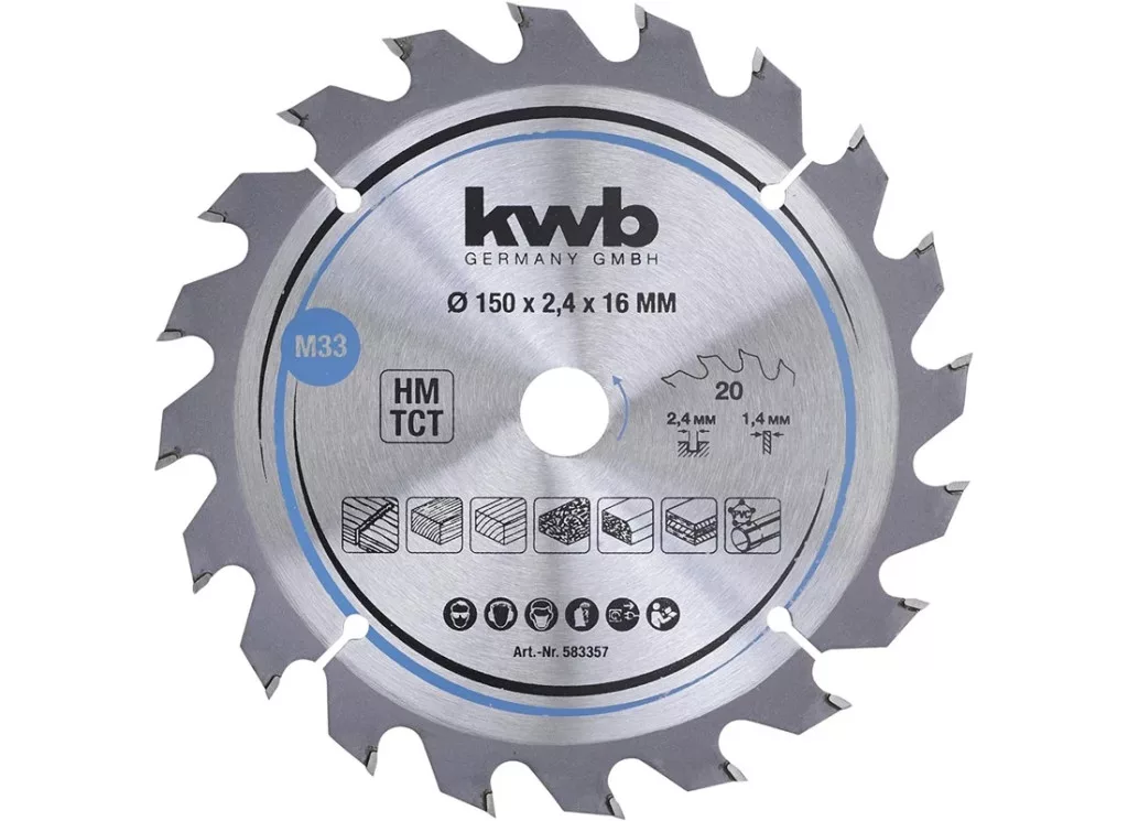 Volfrám-karbid keményfémlapkás körfűrészlap lehetővé teszi a gyors, tiszta vágást keményfa, laminált parketta, munkafelületek és konyhai munkalapok, falemez, forgácslap vagy farostlemez és üvegszállal erősített műanyagokban.