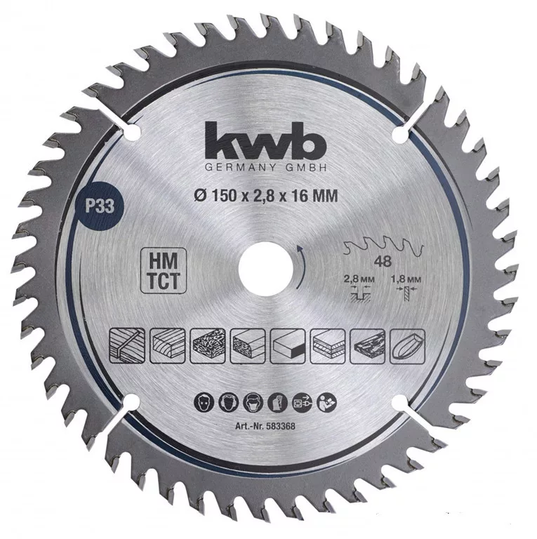 KWB 583368 PROFI TCT, HM Körfűrészlap 150x16x2,8 mm, 48 fogú