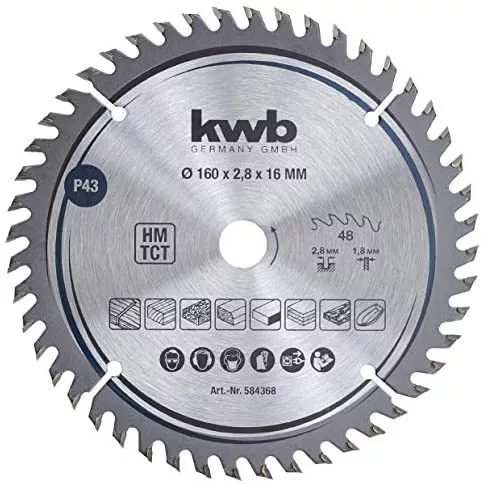 KWB 584368 PROFI TCT, HM Körfűrészlap 160x16x2,8 mm, 48 fogú