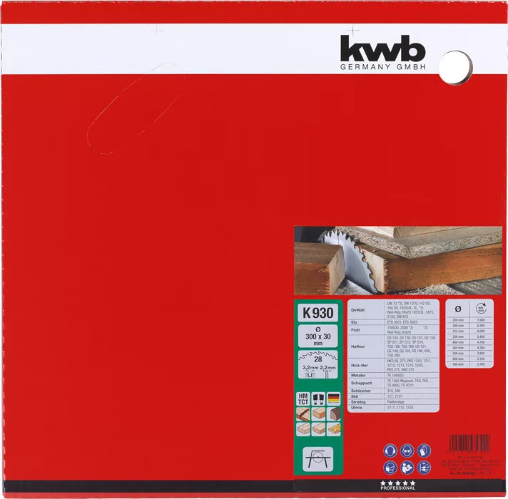 KWB 593044 Keményfém Körfűrészlap 300x30x3,2 mm 28 Fog