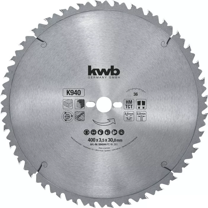 KWB 594033 Keményfém Körfűrészlap 400x30x3,5 mm 36 Fog
