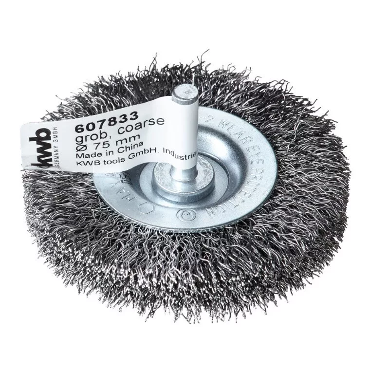0,35 x 75 x 6 mm-es HSS acélhuzalból készült, dupla vastagságú csapos körkefe krimpelve.