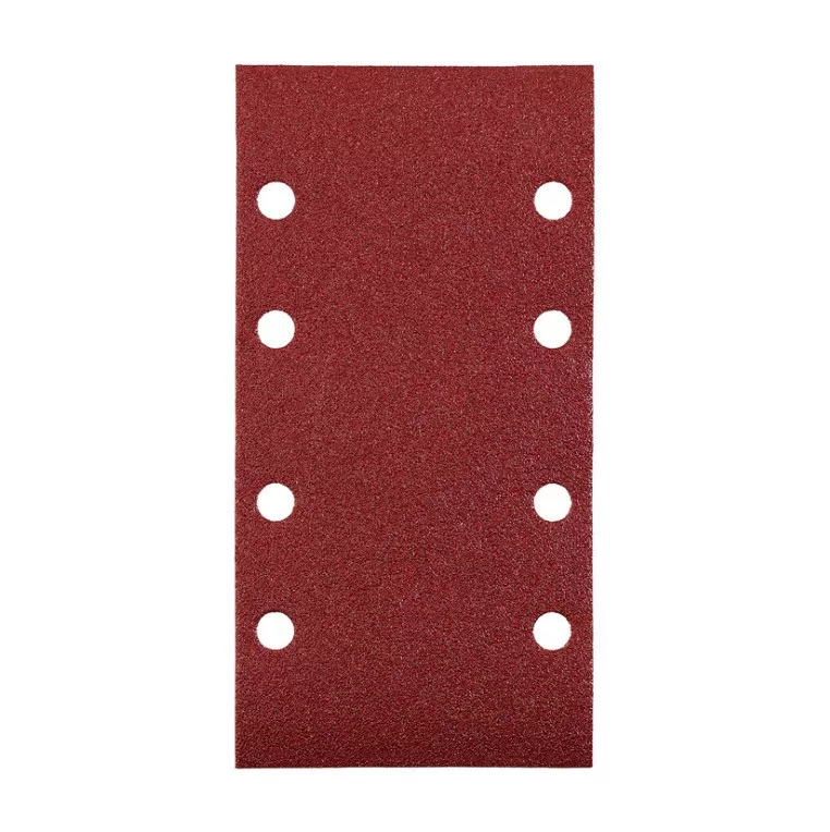 15 db 93 x 185 mm-es, rezgő csiszolólap alumínium-oxid dörzs bevonattal, fenolgyantával ragasztva, megerősített tépőzáras lyukacsos hátlappal, a következő szemcseméretekben: 3 db G40, 4 db G60, 4 db G80 és 4 db G120.