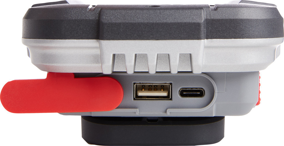 A nagyméretű kwb fényvetőt úgy fejlesztették ki, hogy szinte minden körülmények között segítsen a mobil projektek megvalósításában az építkezéseken és a műhelyekben. A modern lítium-ion akkumulátor töltöttségi szintjelzővel 3350 mAh kapacitással rendelkezik. Túltöltés és kisülés elleni védelemmel, valamint hőmérséklet-figyeléssel rendelkezik, amely megszakítja a töltési folyamatot, ha a környezeti hőmérséklet túl magas vagy túl alacsony. A reflektor fényforrásként is használható. Az powerbank 5 V-os töltőáramot kínál, max. 1,5 A-val. Az reflektor COB fénykibocsátó diódájának maximális fényárama 1,521 lm, és hat fénymódja van. A lámpa kiterjedt fehér vagy vörös felületi fényt produkál, extra nagy, homogén fénykúppal és forró pontok képződése nélkül, és megfelel az ANSI FL szabvány szerinti igényes lámpatest-előírásoknak. A kwb fényvető az egyetlen ilyen termék, amely vörös felületi fényt használ a szem éjszakai látásának fenntartására, amikor sötét környezetben dolgozik. Ezenkívül a piros lámpa vészjelző funkcióval rendelkezik. A rendkívül robusztus ABS / alumínium ház az 1 m-es eséspróbával biztosítja, hogy a kwb fényszóró hosszú élettartammal rendelkezzen. A ház különösen biztonságos, mivel a versenytárs termékekkel ellentétben égésgátló anyagból készül. Az IPX5 védettségű lámpatest védve van a vízsugarakkal szemben. Annak érdekében, hogy a kwb fényszóró bármilyen helyzetben tökéletes legyen, a lámpatest 180 ° -ban elfordítható az alapjában. A reflektoron mágnes és karabiner rögzítőhorog is található. Ráadásul a ház menetes rögzítéssel rendelkezik, így a reflektor fényforrásokra is felszerelhető (pl. Kwb 064340 fotóállvány). USB-C töltőkábelt (tápegységet nem tartalmaz) mellékelünk.