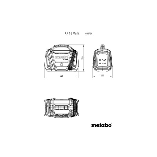 18V-os akkuegységgel vagy alternatívaként egy 12V-os autókábellel is üzemeltethető