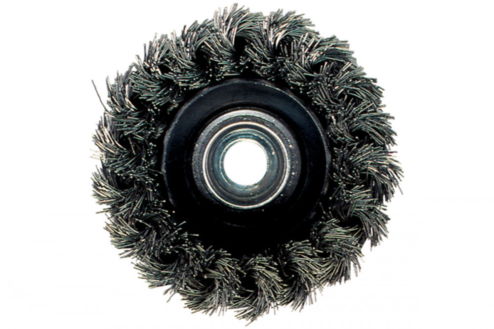 Univerzálisan alkalmazható a fémmegmunkálás területén, pl. tisztításhoz, sorjátlanításhoz, salakmentesítéshez, rozsdátlanításhoz, hegesztési varratok és pontok simításához, salak, és régi festékréteg eltávolításához, Nagy felületek, hegesztési varratok stb. megmunkálásához, Kivitel: fonott acéldrót