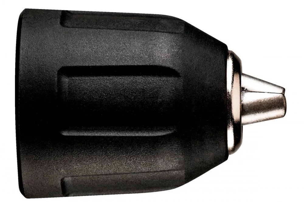 Speciális fejlesztés, tengelyrögzítéssel ellátott fúrógépekhez, Műanyag hüvely, 1-hüvelyes, tartógyűrű nélkül, Kulcs nélküli gyors szerszámcsere, Ütvefúrásra nem alkalmas, Jobb- és bal forgásirányú gépek számára készített, furattal a biztosítócsavarnak, Fel- és leszereléshez hatlap kialakítással