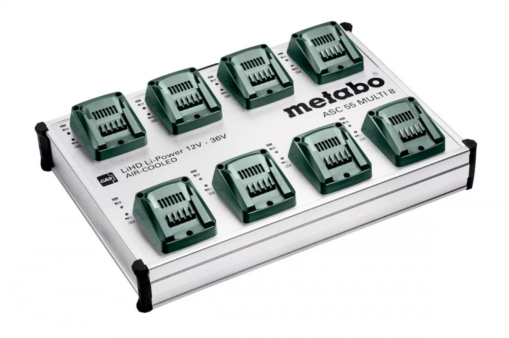 8-szoros Power: töltőállomás nyolc párhuzamos töltőhellyel minden csúszóérintkezős akkuegységhez, valamennyi voltosztályban (12 - 36V), Szabadalmaztatott "AIR COOLED" töltő technológia a rövid töltőidő érdekében az akkuegységek hűtésével a töltés során, Robusztus alumínium ház felfüggesztéssel a falra szereléshez, valamint hordfogantyú a mobil alkalmazáshoz, Optimális kommunikáció az akkuegység és a töltő között az akku maximális töltési időtartama érdekében, 3 év garancia az összes Metabo akkuegységre és töltőre a töltési ciklusok számától függetlenül, Sok márka, egy akkus rendszer: A töltő a CAS márkák valamennyi akkuegységének feltöltéséhez: www.cordless-alliance-system.com, 3 év garancia az összes Metabo akkuegységre és töltőre a töltési ciklusok számától függetlenül, Sok márka, egy akkus rendszer: A töltő a CAS márkák valamennyi akkuegységének feltöltéséhez: www.cordless-alliance-system.com, Oldalsó be-/kikapcsoló gomb az egész töltőhöz