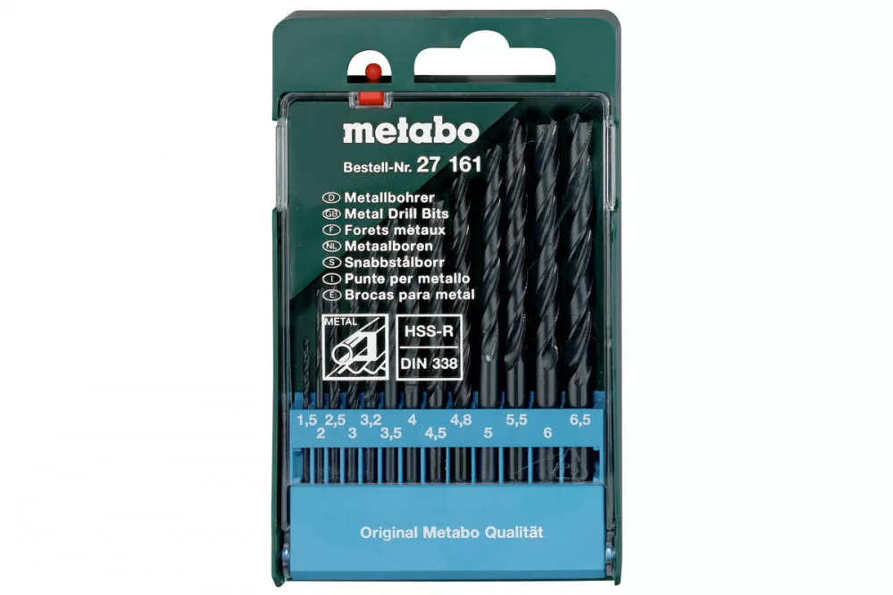 Csigafúró HSS, DIN 338, hengerelt, hengeres, jobb vágásirányú, N típus, Kúppalást-köszörülés 118°, átmérő-tűrés h8, Átmérő tűréshatár h8, Fekete felület, Alkalmazható acél, nemvas fémek, ötvözött és ötvözetlen acélöntvény fúrásához. 900 N/mm² szakítószilárdságig., 13 részes, műanyag dobozban, átmérő: 1,5 / 2 / 2,5 / 3 / 3,2 / 3,5 / 4 / 4,5 / 4,8 / 5 / 5,5 / 6 / 6,5 mm