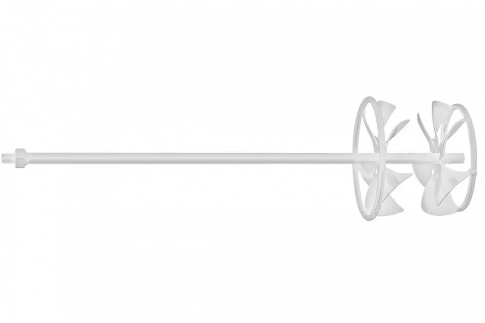 Ideális minden folyékony és önterülő anyaghoz, Keverés felülről lefelé, a spirálok a keverendő anyagot felülről lefelé nyomják, a gyűrű védi a tartályt, A híg anyagok gyors és homogén keverése, Különösen jól használható hígbeton habarcs bekeveréséhez, üreges tégla ragasztásához