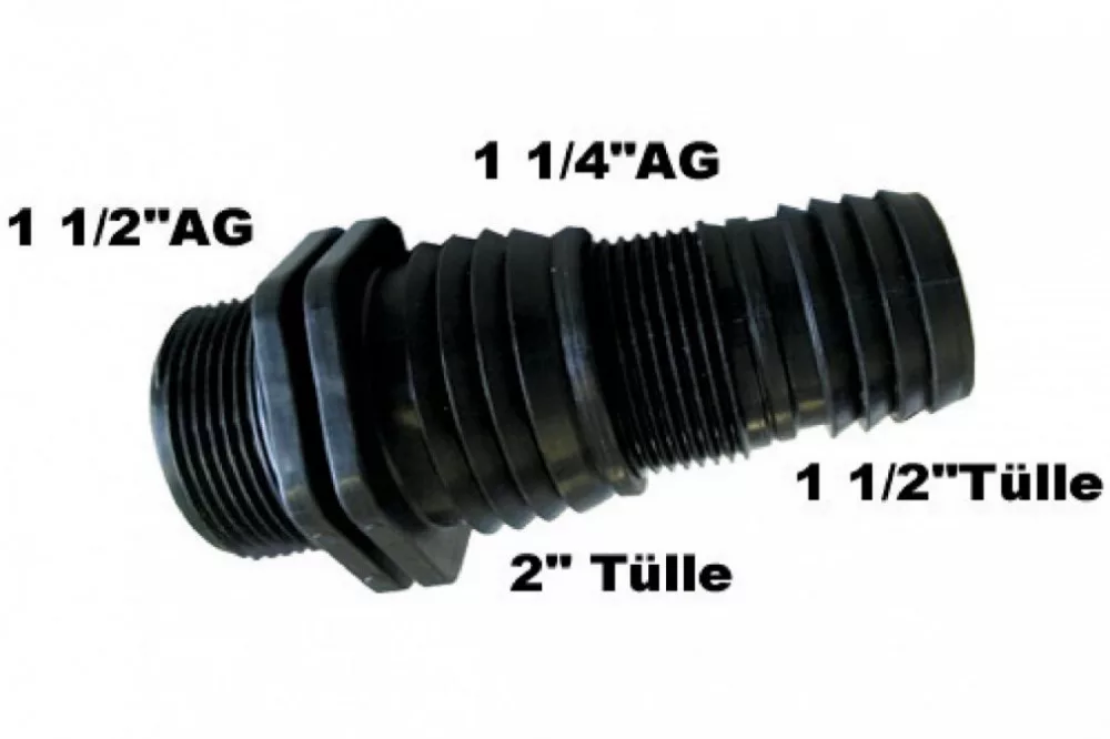 Búvárszivattyúk vagy házi vízművek lefolyó-, szívó vagy kerti tömlőkre való csatlakoztatásához, 1 1/2" k.m. x 2" csővég x 1 1/4" k.m. x 1 1/2" csővég
