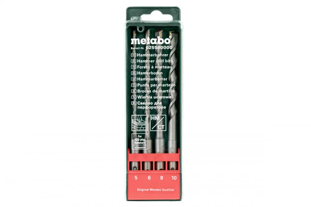SDS-plus fúró kiváló minősegű keményfém fúróheggyel, Dinamikus, véső alakú fúrófej, Nagy volumenű S-spirálgeometria a fúrt törmelék gyors elszállításához, Jó fúróteljesítmény hosszú élettartam mellett, Betonban, falazatban, terméskövekben alkalmazható, 4 részes, műanyag kazettában, átmérő: 5, 6, 8,10 mm, H=160 mm, SDS-plus fúró kiváló minőségű keményfém fúróheggyel; dinamikus, véső alakú fúrófej; nagy volumenű S-spirálgeometria a fúrt törmelék gyors elszállításához; jó fúróteljesítmény jó élettartam mellett; betonban, falazatban, terméskőben való használatra