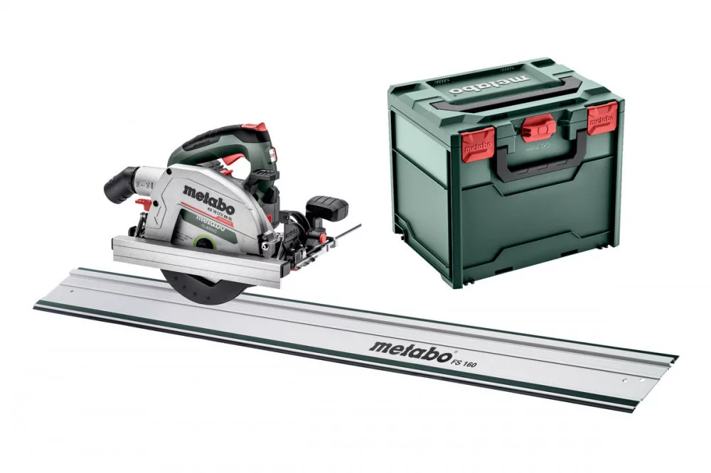 Keményfém körfűrészlap (18 fog), Párhuzamvezetők, imbuszkulcs, Vezetősín - FS 160 (160 cm), metaBOX 340, akkuegység és töltő nélkül